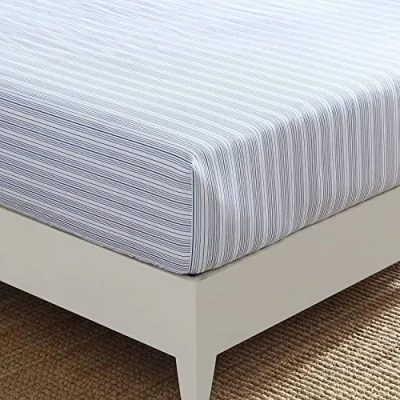 Nautica Queen Fitted Sheet, Cotton Percale Bedding, Casual Home Decor (Beaux Stripe Blue, Queen)