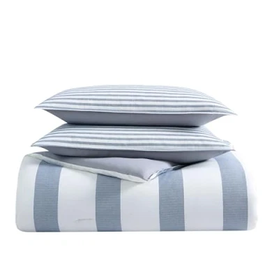 Nautica Reversible Cotton Bedding Set, Designer Home Decor, 100%, Blue/White/Grey, Queen