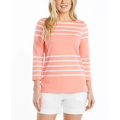 Nautica Women's Boatneck 3/4 Sleeve 100% Cotton Shirt, Coral, Medium