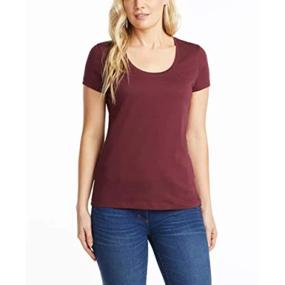 Nautica Women's Easy Comfort Scoop Neck Supersoft 100% Cotton Solid T Shirt, Seaport Burgundy, Medium