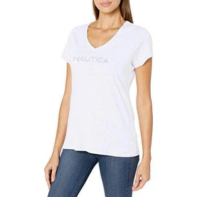 Nautica Women's Easy Comfort Supersoft 100% Cotton Classic Logo T Shirt, Bright White, M