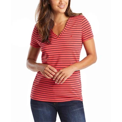 Nautica Women's Easy Comfort V Neck Striped Supersoft Stretch Cotton T Shirt,...