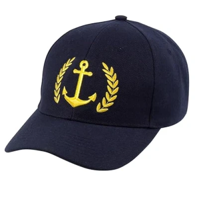 Nauticalia Anchor/Leaf Yachtsman Cap, Cotton Twill, Navy