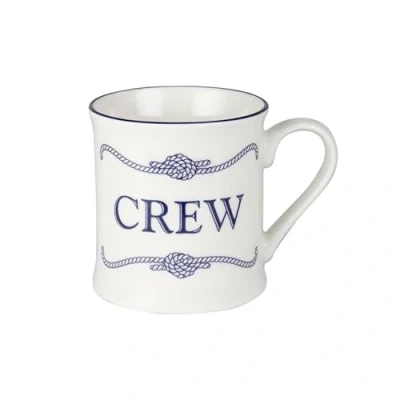 Bright white with a contrasting dark blue rim and "Crew" with rope design. Dishwasher and microwave safe for hassle-free use. Capacity: Holds up to 275ml of your favourite hot or cold beverage. Made of China. Height 9cm Diameter 8cm., Manufacturer: Nauticalia