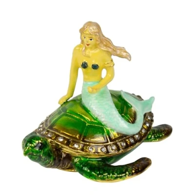 Nauticalia Cloisonné Mermaid on Turtle, 8cm