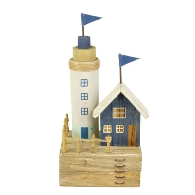 Nauticalia Painted Wood Effect Lighthouse with Wheel, 22cm