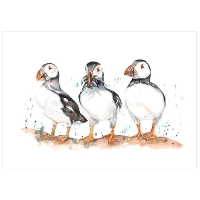 Nauticalia Meg Hawkins Puffin Trio Tea Towel