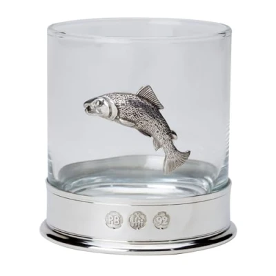 Nauticalia Pewter Mounted Whisky Tumbler with Salmon Badge