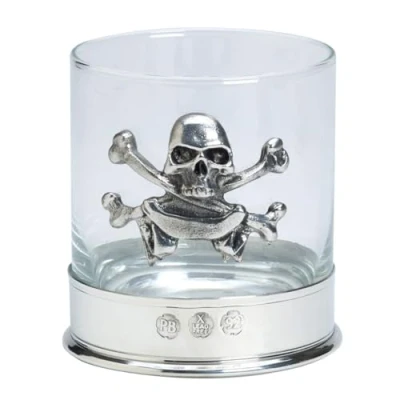 Nauticalia Pewter Mounted Whisky Tumbler with Skull & Crossbones Badge