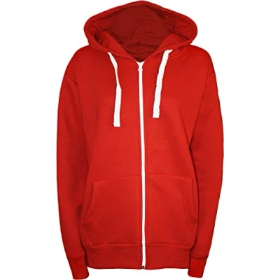 Nauvelle Womens 3028 M Plus Size Plain Full Zip Hooded Top Sweatshirt Hoodie Red 22/24