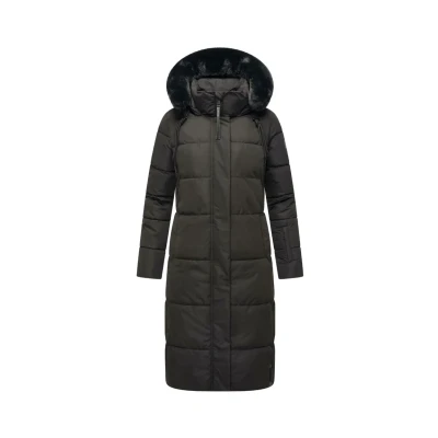 Navahoo Blitzliebe XIV Women's Winter Quilted Coat with Adjustable Hood and (Removable) Faux Fur Lightning Love S 3XL, black, L