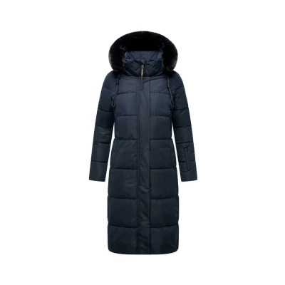 Navahoo Blitzliebe XIV Women's Winter Quilted Coat with Adjustable Hood and (Removable) Faux Fur Lightning Love S 3XL, navy, M