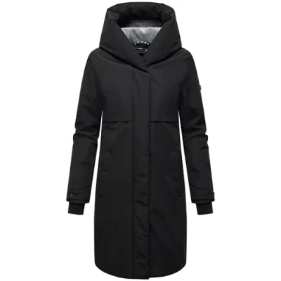 Look: This winter short coat is simple and modern, with clean lines and a subtle sporty flap. The wide, softly lined collar and the large hood set fashionable accents, ideal for combining with boots, jeans or a knitted dress. Material: The non-slip, robust outer material reliably protects against wind and moisture, ideal for winter. Inside, soft fleece in the upper area and a smooth feel in the lower part ensure comfortable, functional comfort. Fit: Slightly tailored in a feminine A-line and knee-length cut, this silhouette flatters any figure. The internal drawstring allows for additional adjustment without interrupting the clean look of the coat. Details: Thoughtful down to the last detail thanks to the concealed 2-way zip with magnetic cover strip, practical fleece pockets with magnetic closure on the outside, two inner pockets with zips, elasticated ribbed cuffs and adjustable cuffs. The winter parka impresses with its sophisticated design and warming functionality. Whether for city walks, commutes or leisure wear, this parka combines style with protection in wind and weather.