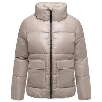 Look: Timeless, functional design with a modern character - this quilted jacket impresses with clean lines and a stylish look. Versatile with denim, boots or trainers, it fits perfectly with elegant everyday and city outfits. Material: The matt shimmering surface looks high-quality and feels pleasantly soft. Despite its warming function, the outdoor jacket impresses with its light weight. Water-repellent, windproof and silky smooth inside - this jacket reliably protects against winter cold while ensuring the highest level of comfort. Fit: The straight cut, hip-covering fit of this quilted jacket ensures freedom of movement and a modern silhouette. The elastic hem and the cuffs with elastic band guarantee an optimal fit and reliably keep cold air out. DETAILS: Sophisticated functionality is evident in lined flap pockets with press studs, hidden hand pockets and two practical inner zip pockets. The design is complemented by a thickly padded stand-up collar and subtle logo details. The quilted women's jacket with chin guard is a functional companion for cold days. With its modern look and thoughtful details, it is ideal for winter walks and city trips in wind and weather.