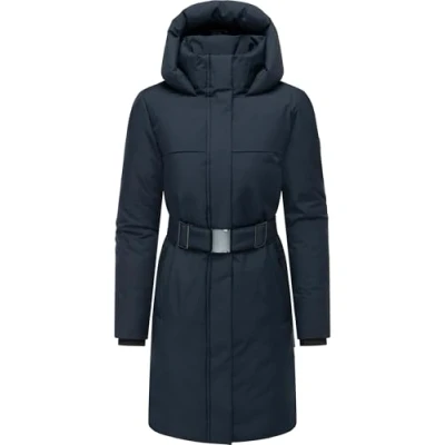 Look: the winter coat impresses with its clean silhouette and subtle belt detail. Ideal for modern looks with a clean line - whether with boots, knits or denim. Material: the non-slip, wind-resistant outer material reliably protects in uncomfortable weather. Inside, the smooth, softly lined lining provides pleasant warmth - perfect for frosty winter days. Fit: The slightly tailored cut with a wide belt conjures up a harmonious silhouette. The mid length to the thigh, the short coat offers protection and freedom of movement - feminine, functional, stylish. DETAILS: Two exterior zip pockets and two secure inner pockets provide convenient storage space. The 2-way zip with wind protection flap and the high-closing, lined collar as well as the ribbed cuffs on the sleeves are functional and precise details. A stylish women's parka for cold days. With warm padding, weatherproof finish and smart details, it is the perfect companion for everyday life, leisure and walks in winter.