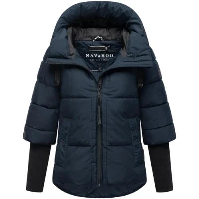 Navahoo Modern Women's Winter Jacket Warm Quilted with Hood and Ribbed Knit Sleeves Lotus Heart XIV XS 3XL, Blue (Dusty Blue), M