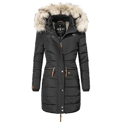 Navahoo Paula Women's Winter Coat, Warm, Quilted Long, with Removable Faux Fur Hood, XS 5XL, black fur, XXL