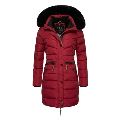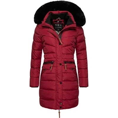 Navahoo Paula Women's Winter Coat, Warm, Quilted Long, with Removable Faux Fur Hood, XS 5XL, dunkelrot, S