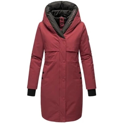 LOOK: Stylish women's winter coat with contrasting elements, high collar and large lined hood from the brand Navahoo - the perfect companion on cold days in autumn and winter! MATERIAL: Grippy, water and wind-resistant outer material, the velvety shimmering inner lining of the parka and soft ribbed cuffs on the sleeve ends protect against wind and weather FIT: Straight-cut, long winter jacket with length down to the knees, the inside waist drawstring allows the fit to be individually adjusted and is therefore super combinable with any style Details: numerous inner and outer pockets that keep your hands warm as well as provide enough storage space for all valuables, the inner zip with press stud cover strip and the outer 2-way zip with magnetic flap cover strip repels wind The modern women's coat combines all the practical functions of an outdoor jacket with a modern style and can be wonderfully combined with all outfits - a real eye-catcher for the cold season