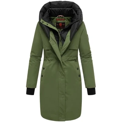 Navahoo Snowelf Women's Long Warm Winter Quilted Jacket with Hood and Magnetic Elements XS XXL, Pine Olive, S