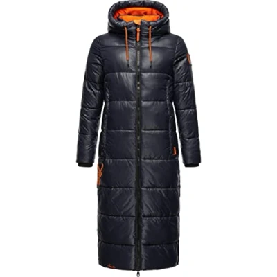 LOOK: Stylish, quilted winter coat from Navahoo in trendy metallic look with numerous contrasting details, such as the fleece-lined hood, which can be adjusted in width with cords MATERIAL: Shiny, water-repellent outer material in a modern metallic look, the soft inner lining and warm yet lightweight padding invite you to cuddle right in FIT: Outdoor coat with great length up to approx. Reaching to the middle of the calves and comfortable, straight cut; for those who prefer a tighter fit: the waist can be adjusted in width with an internal drawstring DETAILS: The 4 lined zippered pockets (2 of them side chest pockets) and several internal pockets offer plenty of storage space, an inside-sewn shoulder strap allows for wearing it around the neck (e.g. when shopping) The thickly lined women's winter jacket is a real fashionable eye-catcher and also offers plenty of leg room thanks to side slits - a fashionable and practical highlight for the cold season (autumn and winter)