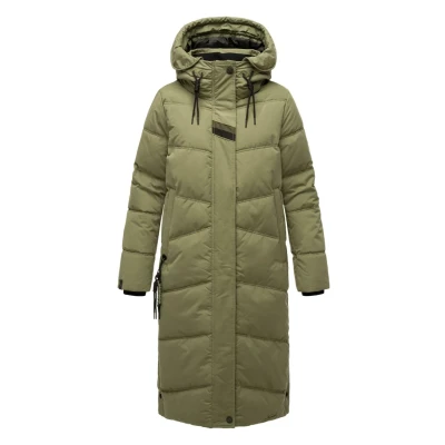 Navahoo Women's Winter Coat, Warm, Quilted Long with Hood, Kuschelmausi S XXL, Olive Leaf, M