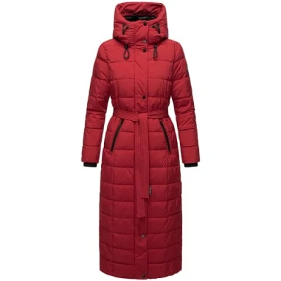 Navahoo Women's Winter Coat Warm Quilted Long with Hood and Waist Belt Part XIV XS 3XL, dunkelrot,