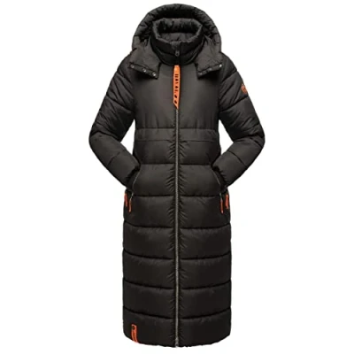 LOOK: Women's quilted coat for winter with contrasting details and inner pocket for Bluetooth headphones and power bank (not included!) MATERIAL: Outdoor coat with matte shimmering, wind-resistant, and water-repellent outer material, the smooth inner lining is soft and invites you to cuddle in directly FIT: The warm lined winter jacket with a length of approximately Reaching to the middle of the calves, it scores points with its modern oversized look, side slits, and the 2-way zipper offers plenty of freedom of movement DETAILS: Wide ribbed cuffs on the sleeves, lined pockets to prevent cold hands, and the high-closing collar are perfect for winter, the zipper pull is detachable and e.g. Can be used as a key ring The wide quilted winter coat can be combined with any style and should not be missing in any wardrobe - Perfect for the cold season (autumn and winter)!