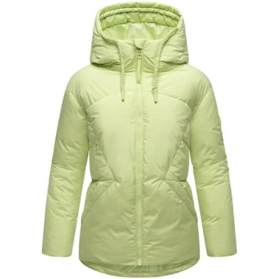 Navahoo Women's Winter Jacket Warm Quilted with Adjustable Hood and Magnetic Details Pastel Magic 14 S 3XL, Lime, M