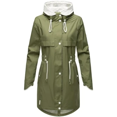 LOOK: The stylish women's parka is ideal for the transition and fits perfectly with urban wardrobe as well as outdoor clothing. Whether with jeans and trainers for a casual look or with cargo trousers and boots for an active lifestyle - the timeless design makes the functional jacket the perfect choice for any occasion. Material: medium-thick lined outdoor coat made from a non-slip, water-repellent outer material, which is also durable and hard-wearing. The silky smooth inner lining that extends up to the hood enhances the comfortable fit. Fit: Ultra lightweight coat with great length to the middle of the thigh (cut longer at the back than the front) and walking slit at the back (dovetail cut). The trench coat is figure-flattering and conjures up a great silhouette thanks to the individually adjustable waist with cords and elastic at the back. Details: long transition jacket with large hood, which can be deformed as desired by an integrated, flexible metal reinforcement in the edge to prevent annoying slipping into the field of vision. Side press stud pockets and two inner zip pockets offer plenty of storage space. The sleeve ends are half elasticated and bevelled. The lightly lined functional coat in a modern style can be wonderfully combined with many different outfits - a real favourite piece for spring, autumn and cool summer days