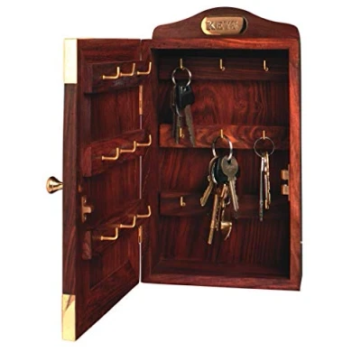 Made from solid polished hardwood (not plywood or MDF) Contains 18 brass hooks for your keys Chunky brass corners, push/pull catch, and doorknob Measures 29x18x8cm From Nauticalia, specialists in nautical gifts and accessories since 1974