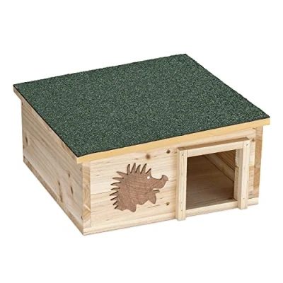 KEEP SAFE: This wooden hedgehog house helps to keep your spikey friends guarded from predators, such as birds and foxes, as well as giving them a safe and comfortable space to care for their litter. ALL YEAR ROUND: Whether it's raining, snowing or sunny, this wooden hedgehog house is designed to provide your friendly neighbourhood hedgehog with a safe space to hide away all year round. PRODUCT DETAILS: Comes with 1 wooden hedgehog house with a detachable, slanted roof. Assembly required. COSY UP: To help keep the hedgehogs warm, place straw or leaves inside this hedgehog house in order to provide them with a warm environment for them to cosy up in and escape the winter weather during hibernation. EASY TO CLEAN: You can easily clean out this wooden hedgehog shelter by removing the roof, clearing out any debris and pouring boiling water inside before leaving it to dry. Just make sure no hedgehogs are inside!