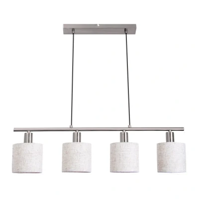 The MARON pendant light is a gem for any living space. Pendant lights provide direct and targeted lighting, making them ideal for illuminating dining tables, kitchen islands, work areas, or other areas that require a concentrated light source. They accentuate specific zones and create a clear light source for everyday tasks. This classic-style light impresses with its elegant appearance and beamed design—perfect for those who appreciate something special. The light is made of metal and fabric and has a natural color. The satin-finished frame and covered shade form a perfect unit. The pendant light measures 71.5 cm in length, 12 cm in width/depth, and 140 cm in height. The pendant length is 120 cm. Equipped with four G3 sockets, which you can equip with the appropriate bulbs according to your wishes, the pendant light brings light into any room. You can change the bulbs yourself, saving time and money. This luminaire complies with Class 1. Mains operation of this device requires a mains