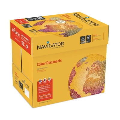 Navigator A4 Colour Documents Printer Paper White 120gsm (Box of 8 reams) delivers ultra-smooth, heavyweight sheets for outstanding colour printing with sharp image definition and vibrant tones. FSC® and EU Ecolabel certified, it's ideal for professional presentations and high-volume use in both inkjet and laser printers.