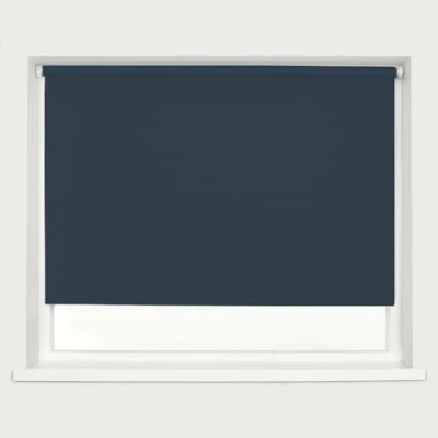 Navy Blackout Roller Blind Metal Fittings Trimmable UV Protection Thermal Properties Premium Fabric Home Office Bedroom Kids Room Child Safe Easy Fit 210cm Width x 160cm Drop