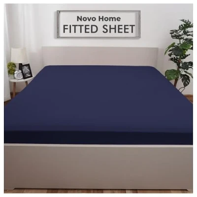 Navy Blue Fitted Sheet Single Beds (90x190 cm, Deep 35 cm) Pack of 1 Soft Microfibre Elasticated Cover Breathable, Durable & Easy Care Bottom