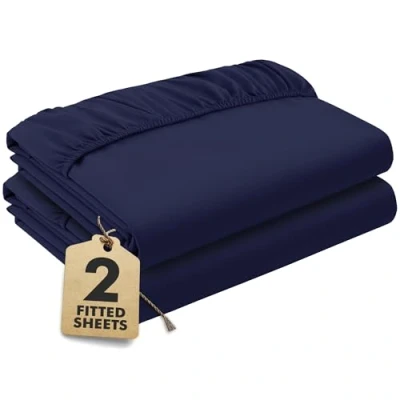 Navy Blue Fitted Sheet Single Beds (90x190 cm, Deep 35 cm) Pack of 2 Soft Microfibre Elasticated Cover Breathable, Durable & Easy Care Bottom