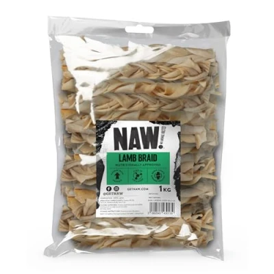 NAW Lamb Braids For Dogs, 1kg. Premium Braided Dog Chews Made From 100% Natural To Support Healthy Dental Hygiene