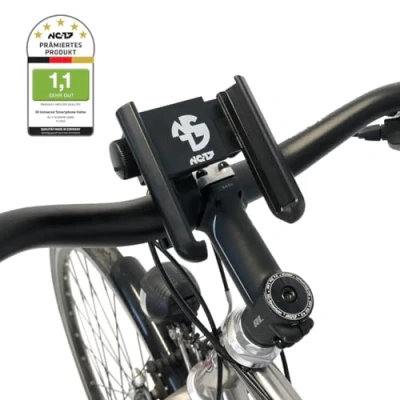 Secure universal holder for your smartphone, whether you are in the city, trekking or driving to work - your mobile phone is always safe. Also fits with your favorite case up to 15mm thick. Easy to install on handlebars. Compact design, stability, material and light weight make the NC-17 One-Click Mount a reliable partner for your personal bike setup. The one-click mount is a completely new construction that perfectly complements our proven NC-17 universal holder. Our new one-click mount has been designed for the normal ride, resulting in a lighter weight and the simplicity of mobile phone attachment. For the mobile phone retaining clamp, the tried and tested eccentric quick release system has been used on bicycles. After the easy initial adjustment of the holder, your mobile phone is securely attached to the bike in seconds. The proven ball pan allows 360 degree rotation with which you can freely adjust your mobile phone in portrait or landscape mode. Most functions such as volume or camera are freely accessible. A very good and cheap, but above all safe way to carry your phone on your bike. Box contents: the classic handlebar mounting is achieved with a clamp, which can be adjusted to any handlebar diameter between 25.4 to 31.6 lined with soft pads. It is also possible to attach to curved handlebars, as you can always align your mobile phone according to your wishes thanks to the 3D adjustment of the holder.
