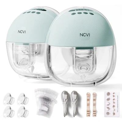 NCVI Electric Breast Pump Hands Free 8131, Wearable Portable Breastfeeding Pumps with 4 Modes 9 Levels, Rechargeable Ultra Quiet Milk Pump, Includes 19/21/24mm Comfortable Flanges (2 Pack, Green)
