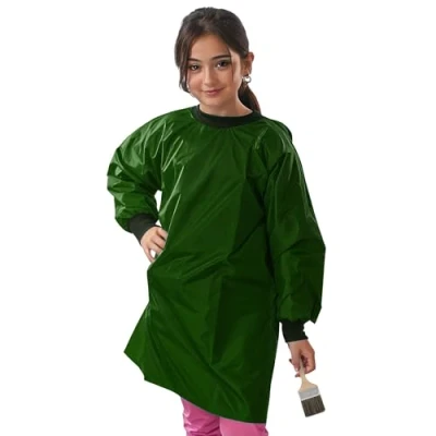 ND Sports School Kids Craft Time Art Class Protective Wipe Clean Smock Apron (Bottle Green, 6 8 Years)