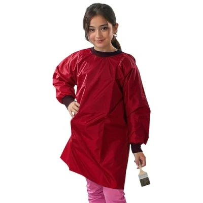ND Sports School Kids Craft Time Art Class Protective Wipe Clean Smock Apron (Red, 8 10 Years)