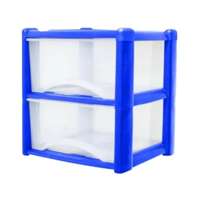 Neat. 2 Plastic Storage Drawers Unit with See Through Drawers, Compact Vertical Design Durable Plastic, Ideal for Organizing Office Crafts, and Household Items, 40cm x L39cm W39cm Blue