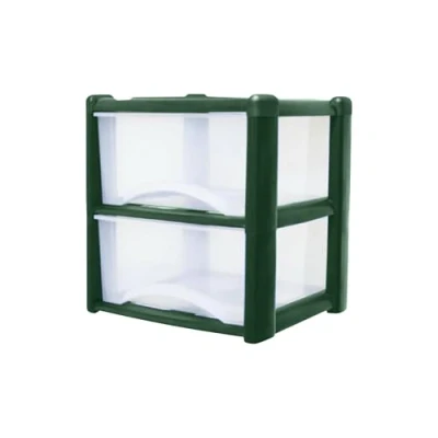 Neat. 2 Plastic Storage Drawers Unit with See Through Drawers, Compact Vertical Design Durable Plastic, Ideal for Organizing Office Crafts, and Household Items, 40cm x L39cm W39cm Dark Green