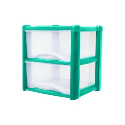 Neat. 2 Plastic Storage Drawers Unit with See Through Drawers, Compact Vertical Design Durable Plastic, Ideal for Organizing Office Crafts, and Household Items, 40cm x L39cm W39cm Light blue
