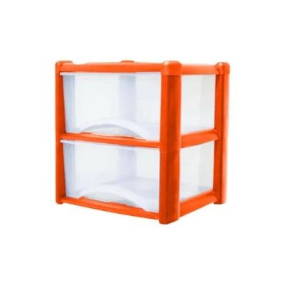 Neat. 2 Plastic Storage Drawers Unit with See Through Drawers, Compact Vertical Design Durable Plastic, Ideal for Organizing Office Crafts, and Household Items, 40cm x L39cm W39cm Orange
