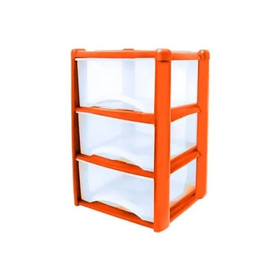 Neat. 3 Plastic Storage Drawers Unit with See Through Drawers, Compact Vertical Design Durable Plastic, Ideal for Organizing Office Crafts, and Household Items, 60cm x L39cm W39cm Orange