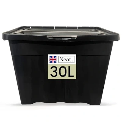 Neat. 30L Storage Boxes with Lids Black Base & Hinged Lid Ideal for Home Organisation, Durable Plastic Containers, Space Saving Box Solutions, Easy Access, Pack of 1