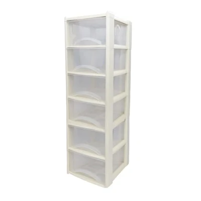Neat. 6 Plastic Storage Drawers Unit with See Through Drawers, Compact Vertical Design Durable Plastic, Ideal for Organizing Office Crafts, and Household Items, 120cm x L39cm W39cm Cream