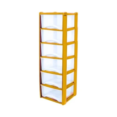 Neat. 6 Plastic Storage Drawers Unit with See Through Drawers, Compact Vertical Design Durable Plastic, Ideal for Organizing Office Crafts, and Household Items, 120cm x L39cm W39cm Yellow